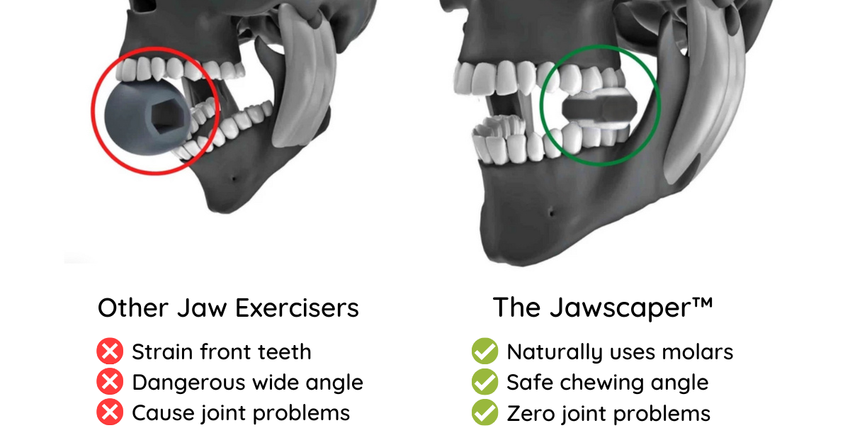 The Jawscaper™ works by putting safe pressure on your molars, unlike other jaw exercisers that put harmful pressure on your front teeth.