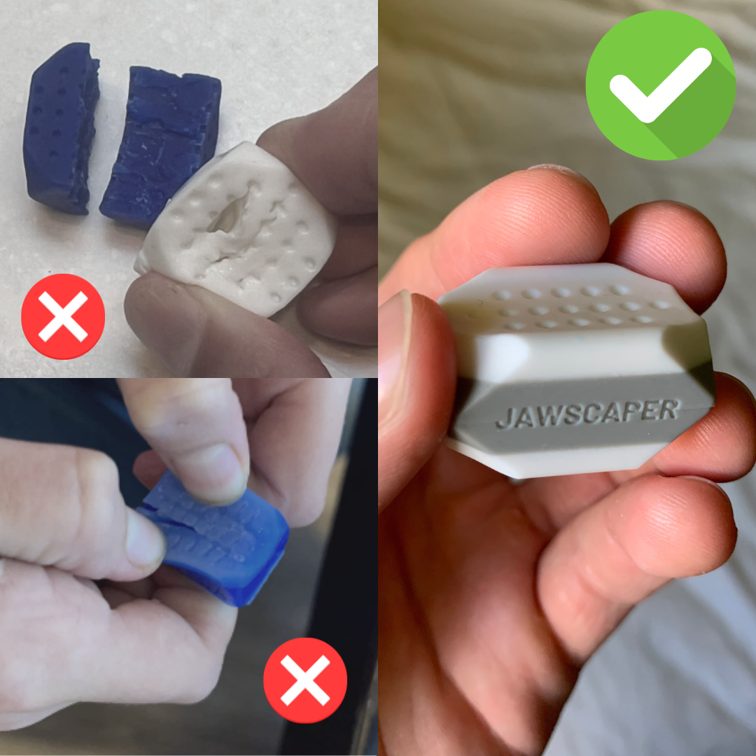 The Jawscaper™ is highly durable and can withstand maximum jaw pressure. Built to last, while other knock-offs break apart in a matter of days.